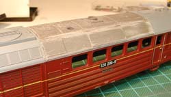 Umbau der BR 120 von Gützold zu einer Maschine der Lieferserie V200 001-107, welche noch keinen Schalldämpfer besaß.
