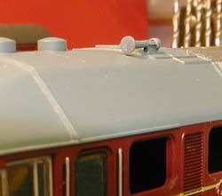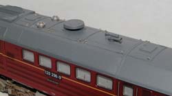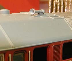 werden. Dabei ist auch das eine Loch des Typhons, welches sich auf der Führerstandsseite “1” befindet, zu verschließen und die Luftleitung zu entfernen. Wenn alles gesäubert ist, können das Dach, die Typhone