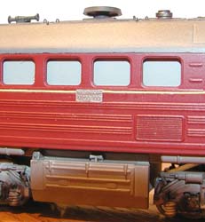 ist, kommen die gelben Streifen auf die Seiten und die neuen Lokschilder Zum Schluß kommen die Emaille-Nummernschilder V200 100 noch an ihren Platz. |