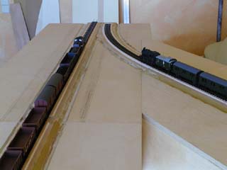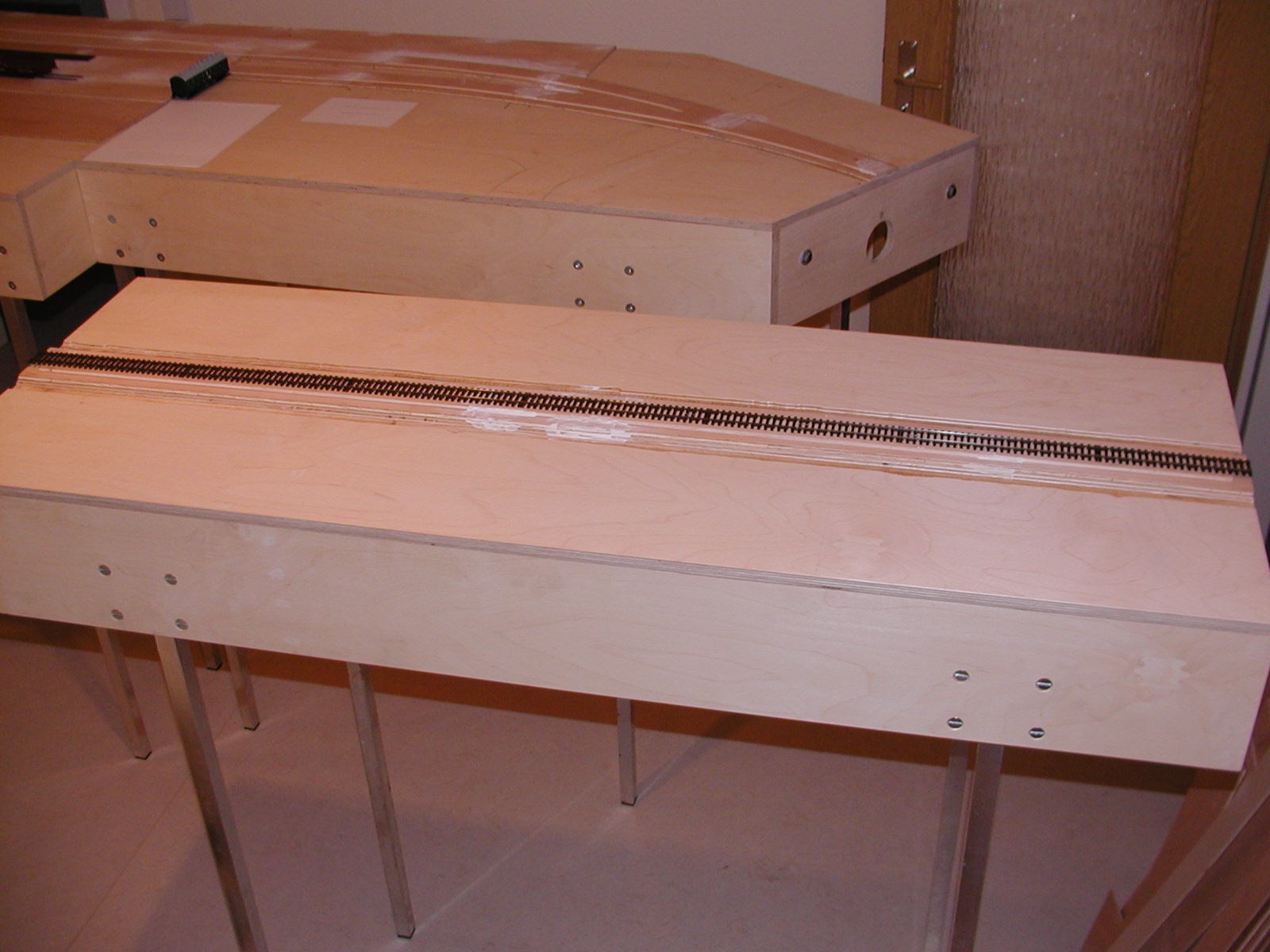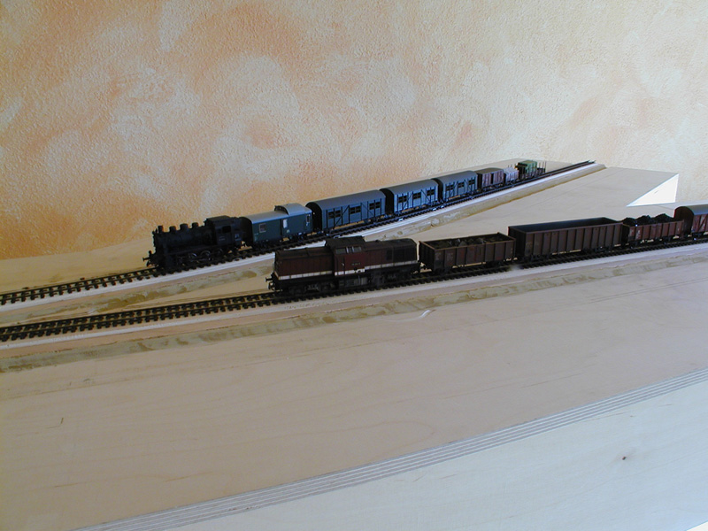 Das ist nun das Streckenmodul, welches auf der linken Seite des Bahnhofs seinen Platz erhält. Die Zufahrt der