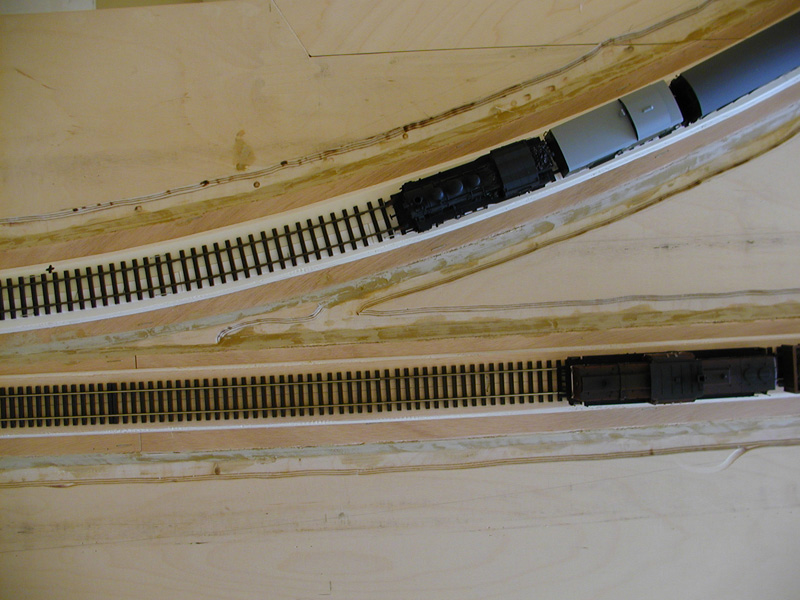 Im Anschluß an die gemeinsame Ein- und Ausfahrt (obere Bilder) schließt sich das Trennungsmodul an. Von ihm zweigt das Gleis der GöKrB