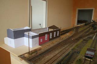 ausgedruckt und schon an seiner zukünftigen Stelle platziert worden. Leider gibt es vom Vorbild des Lokschuppens nur eine Zeichnung, aber keine Fotos.