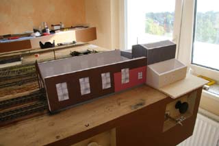 Auch der Lokschuppen ist als Probemodell mit Corel-DRAW gezeichnet,