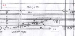 Hier zweigt von der GöKrB das Über- führungsgleis zum Staatsbahnhof ab.