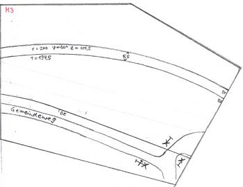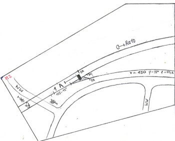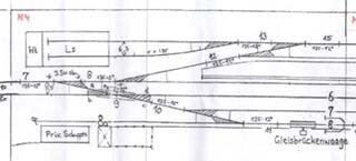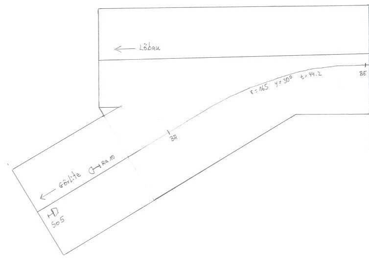 Der Winkel der abzweigenden Strecke beträgt: 45 Grad