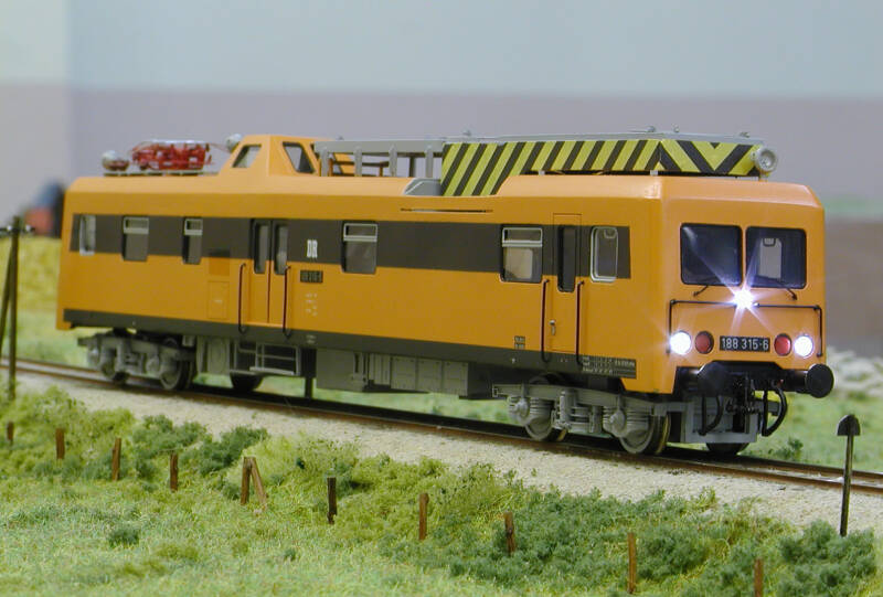 Das Fahrwerk ist bereits vormontiert. Der Triebwagen ist mit einen Roco-Motor bestückt. Mit einen Zimo-Dekoder, welcher auf die vorhandene Schnittstelle gesteckt wird, hat der Triebwagen sehr gute Laufeigenschaften. Da mir zu damaliger Zeit, als ich den Bausatz erworben hatte, noch die Erfahrungen im Fahrzeugbau fehlten, habe ich diesen Triebwagen von einem guten Modellbahnfreund, Thomas Rose zusammenbauen lassen. Daher kann ich den Baufortschritt mit einzelnen Bildern nicht dokumentieren.