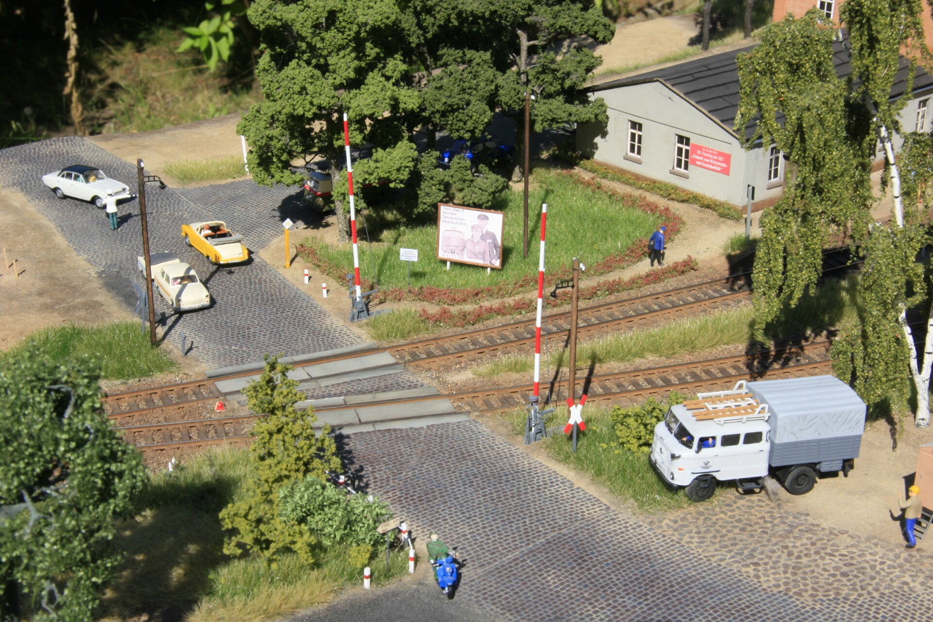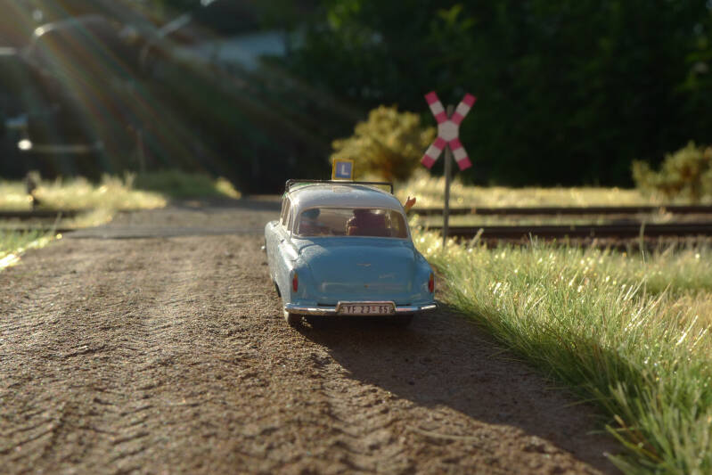 In der Fahrschule ist heute das Thema "Verhalten an Bahnübergängen" dran.