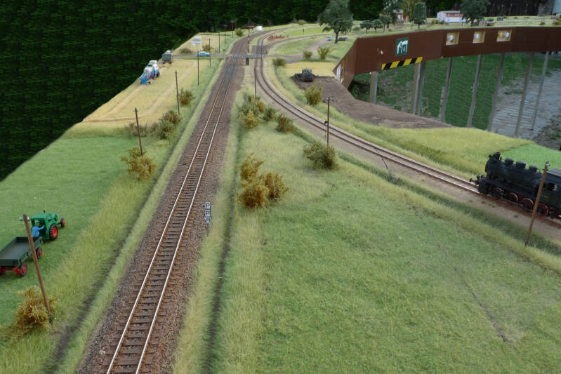 Das mittlere Gleis ist das Übergabegleis zur Staatsbahn.