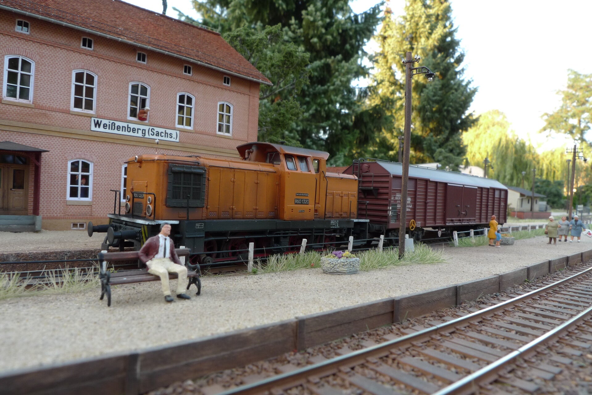 Erna holt mit klein Heike die Oma Herta vom Zug ab. P3303 kam gerade um 13:07 Uhr aus Löbau an.