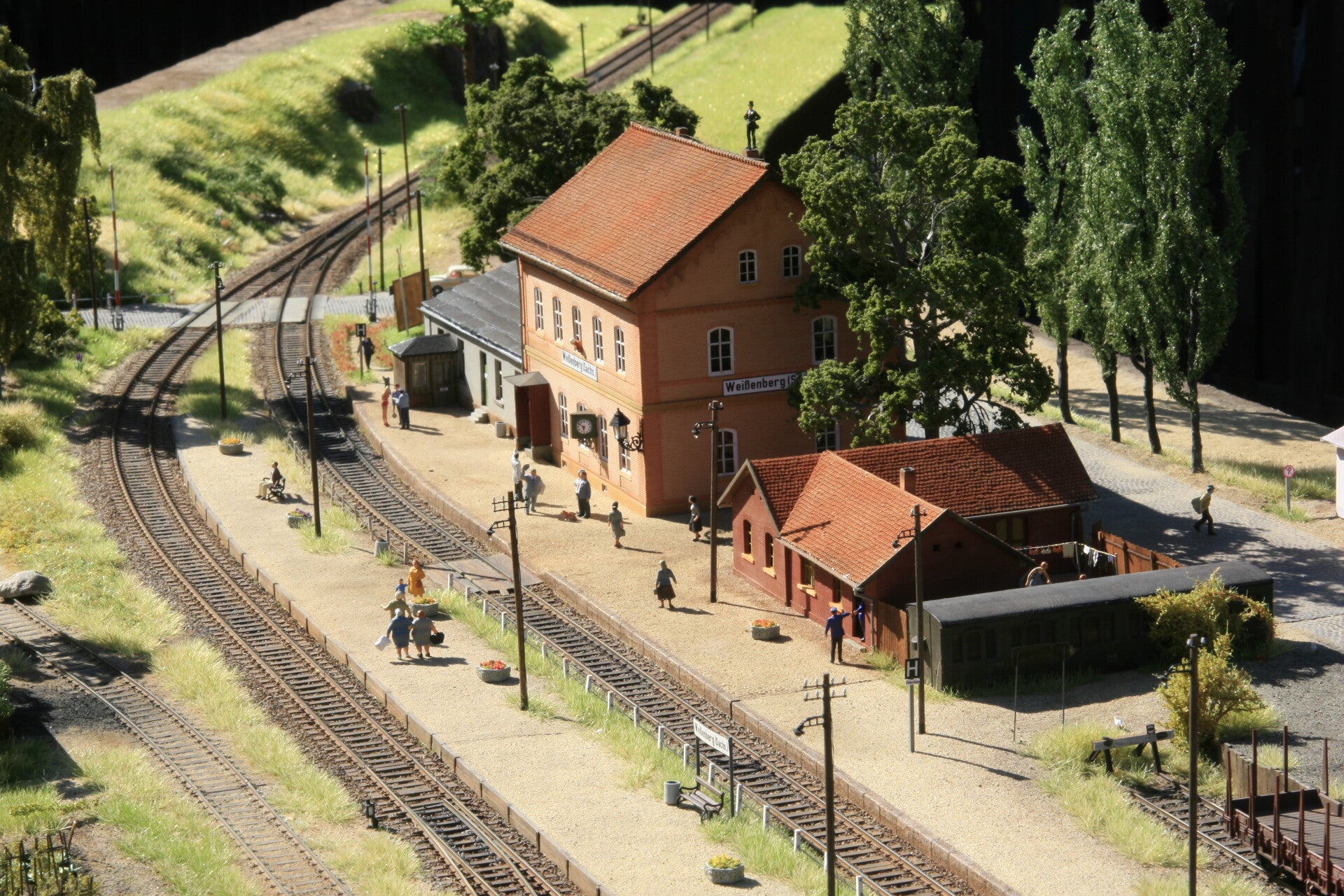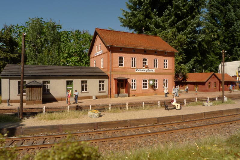 Die folgenden Fotos vom Bahnhof sind bei mir im Garten entstanden. Bei Tageslicht, bzw. noch besser bei Sonnenlicht wirk alles viel echter. Für weitere Fotos bitte unter der Rubrik "Modultreffen" schauen.