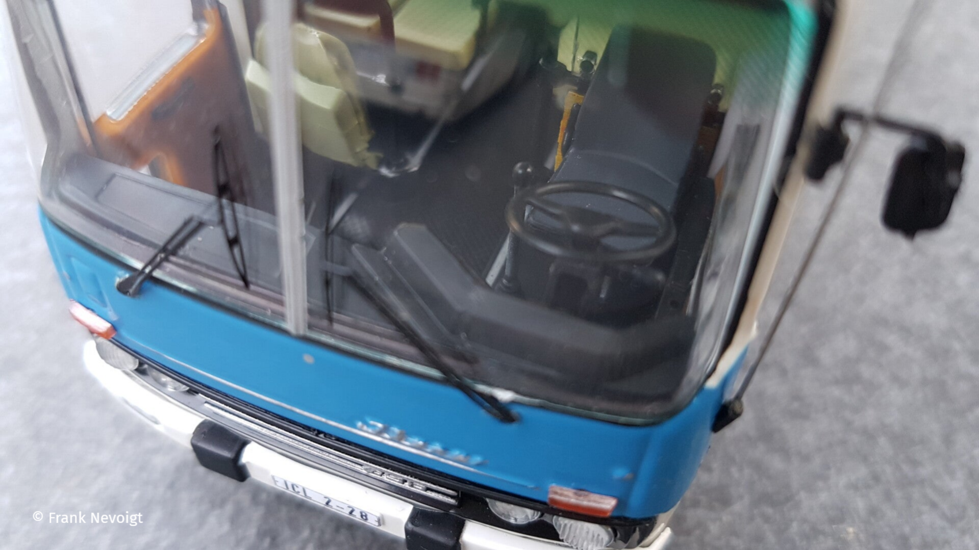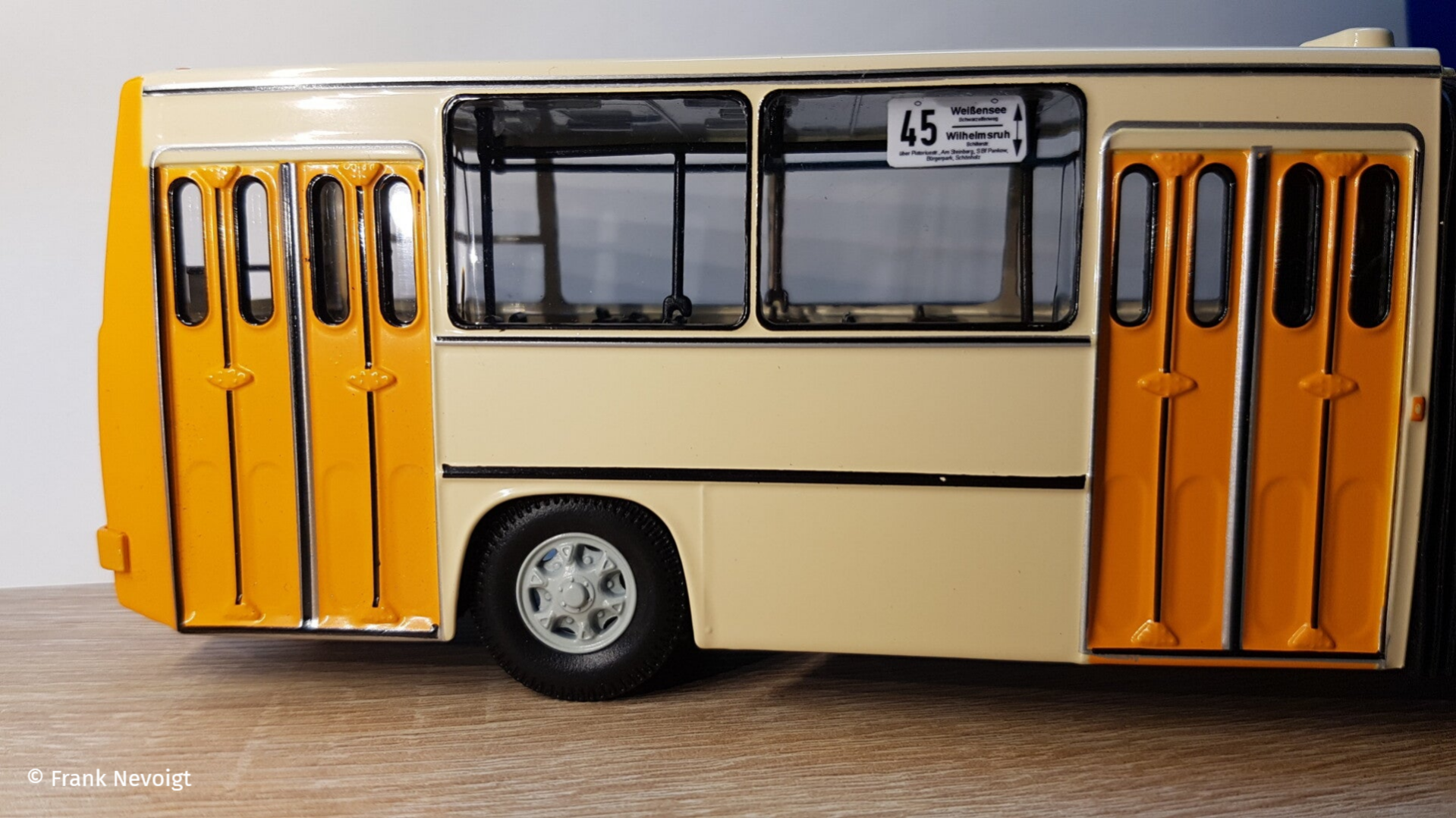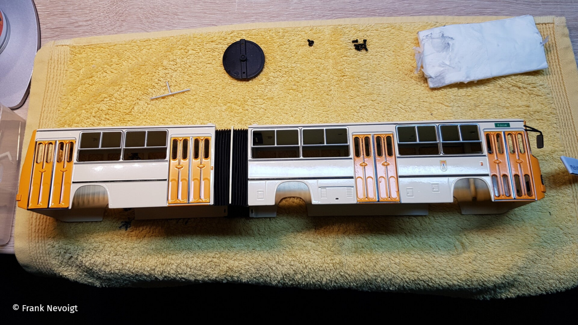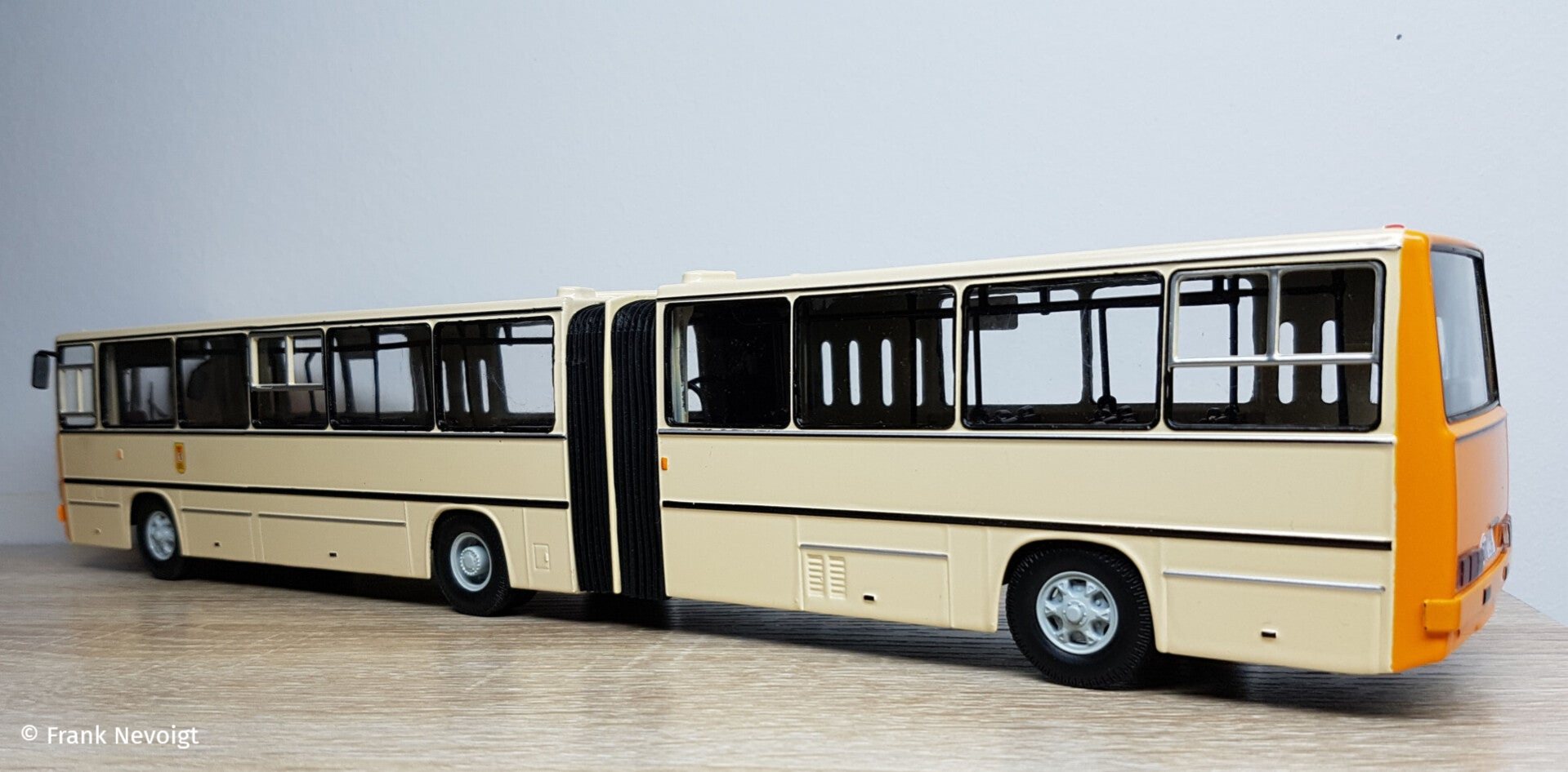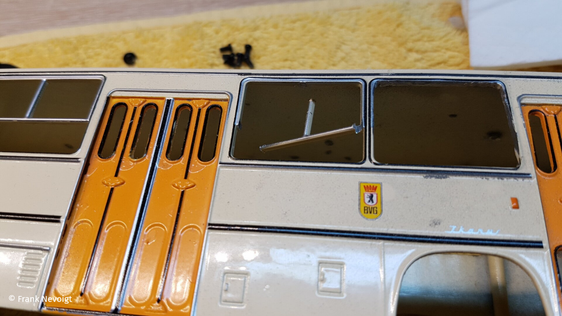Dies betrifft die seitlichen Fenster. In vielen Ländern wurden die Fahrzeuge mit großem Schiebe- oder Klappfenster an allen Fenstern ausgestattet. Die DDR forderte aber eine preiswertere Variante, die nur zwei Schiebefenster auf der linken Seite vorsah. Eins im vorderem und eins im Nachläufer. Auch bei den kurzen Modellen, der 260er Stadtbusse (Hacki) gab es nur zwei Schiebefenster. In der folgenden Bildfolge zeige ich, was ich am Fahrzeug geändert habe.